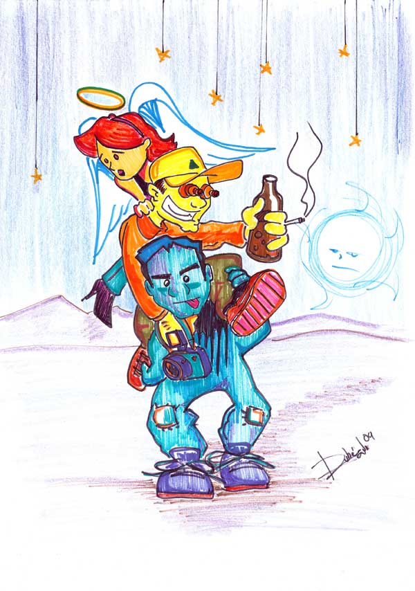 El fin pasado acabé escapándome del dichoso "reib" y me fui a caminar solo bajo la luz de la luna. Después de un rato me di cuenta de que venía cargando con mis egos, mi conciencia, mis demonios... Con razón me duelen a veces las rodillas.